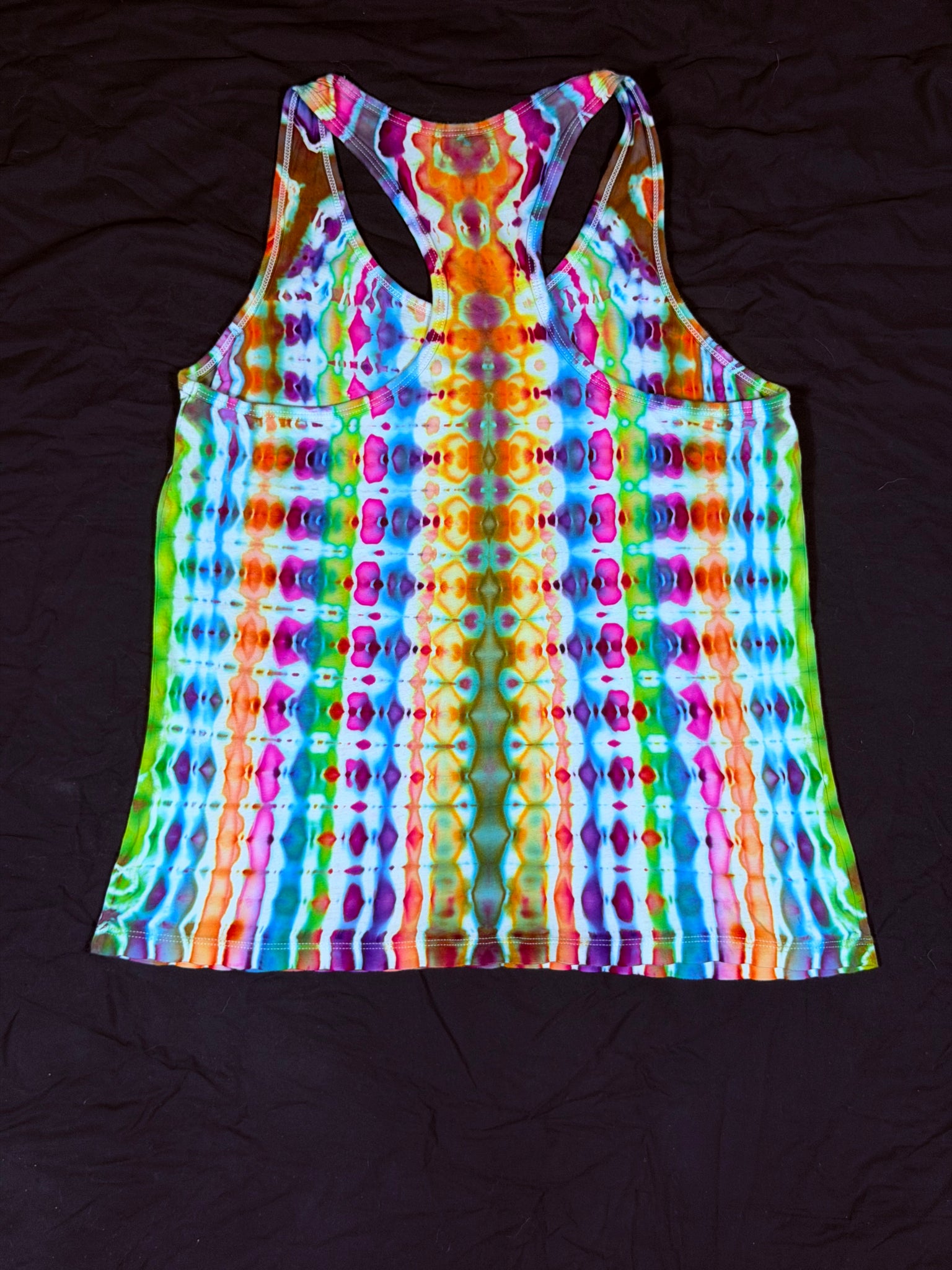 This Bella Canvas Ladies Racerback Tank Top is your new go-to for cozy, colorful vibes! Handmade with 100% soft cotton and dyed with liquid colors, each piece is totally one of a kind. It’s comfy, breathable, and hugs a little smaller than the label says—perfect for a snug, flattering fit. Get ready to show off your unique style with this playful, easy-to-wear tank!