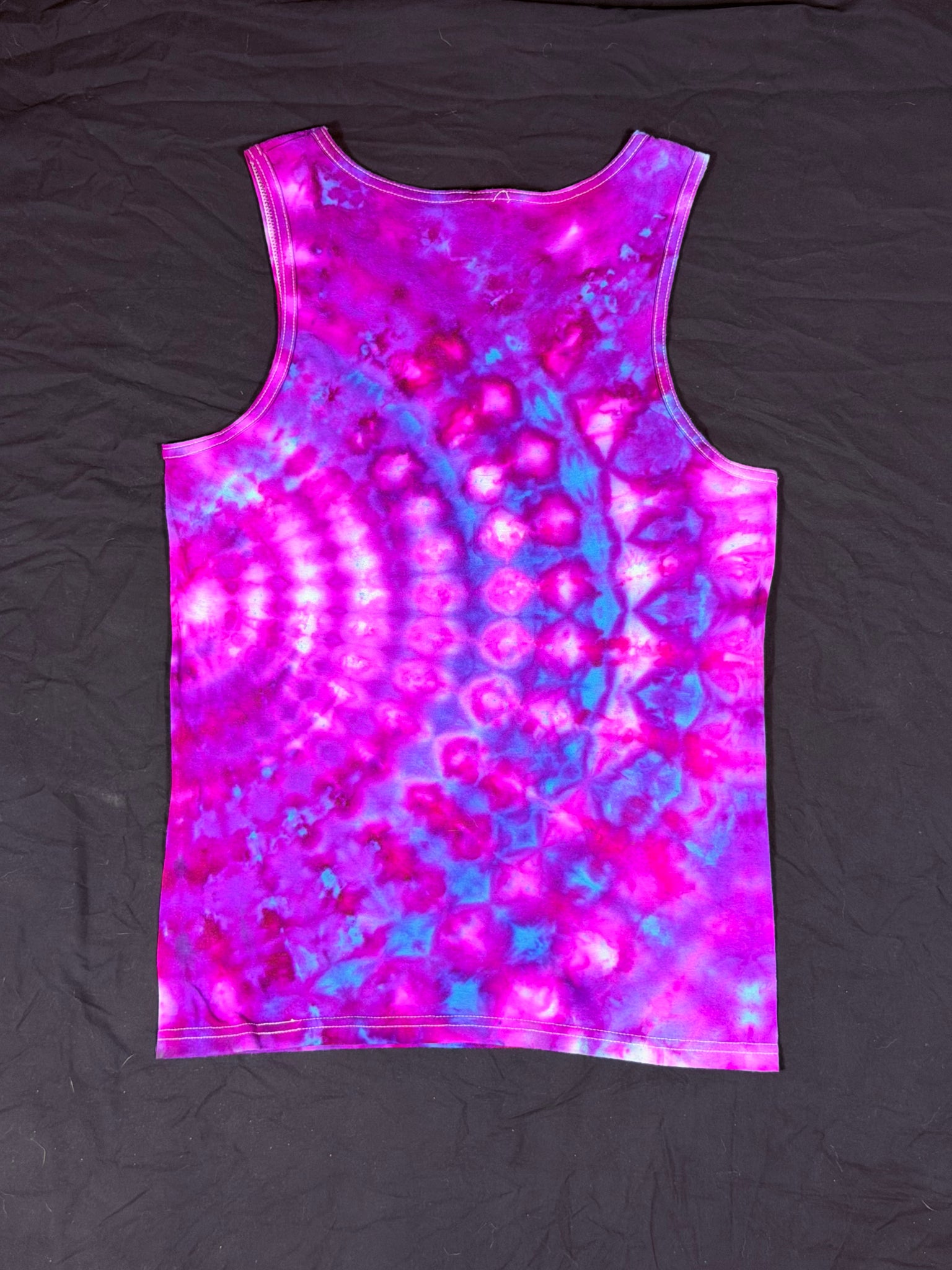 Get ready to turn heads with our Sm Gildan Unisex Tank Top! Handmade with 100% soft cotton and dyed using a unique ice dye technique, each piece is a colorful one-of-a-kind creation. Perfectly comfy and breathable, it’s your new go-to for chill days or fun adventures. Slip into something playful and totally you!